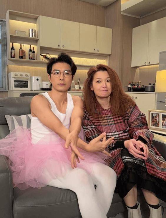 原来张景淳这身打扮是为了拍摄《爱・回家》,剧情讲述他为了哄 “老婆” 吕慧仪开心,不惜 “牺牲形象” 穿上芭蕾舞装。